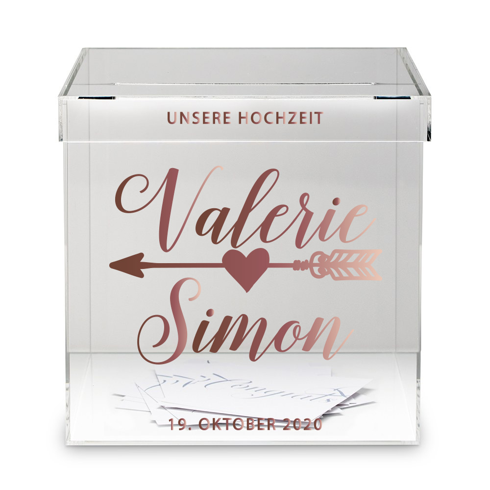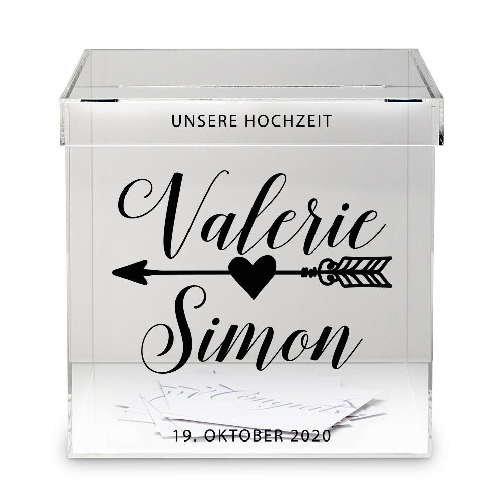 Eure Hochzeitspost kann in dieser Briefbox mit personalisiertem Aufkleber aufbewahrt werden. Die Box ist auch nach der Trauung ein schöner Aufbewahrungsort für schöne Erinnerungen z.B. Fotos, Strumpfband ect.